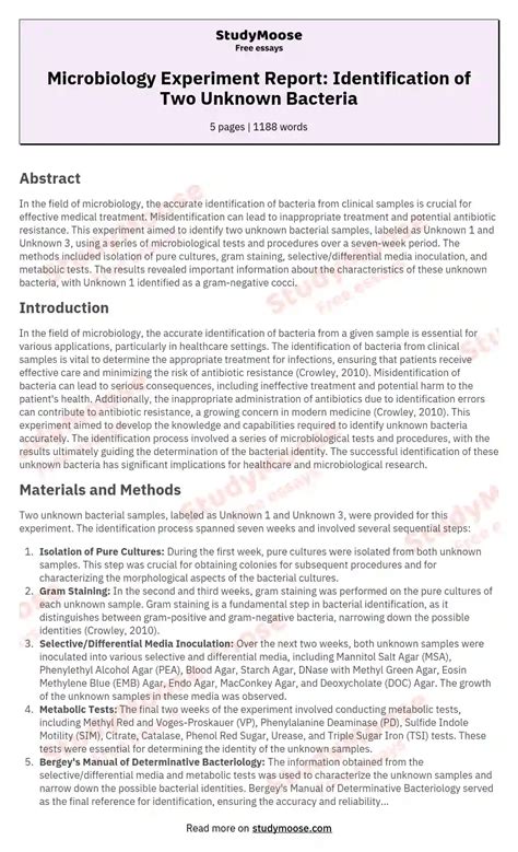 Read sample microbiology unknown paper Epub